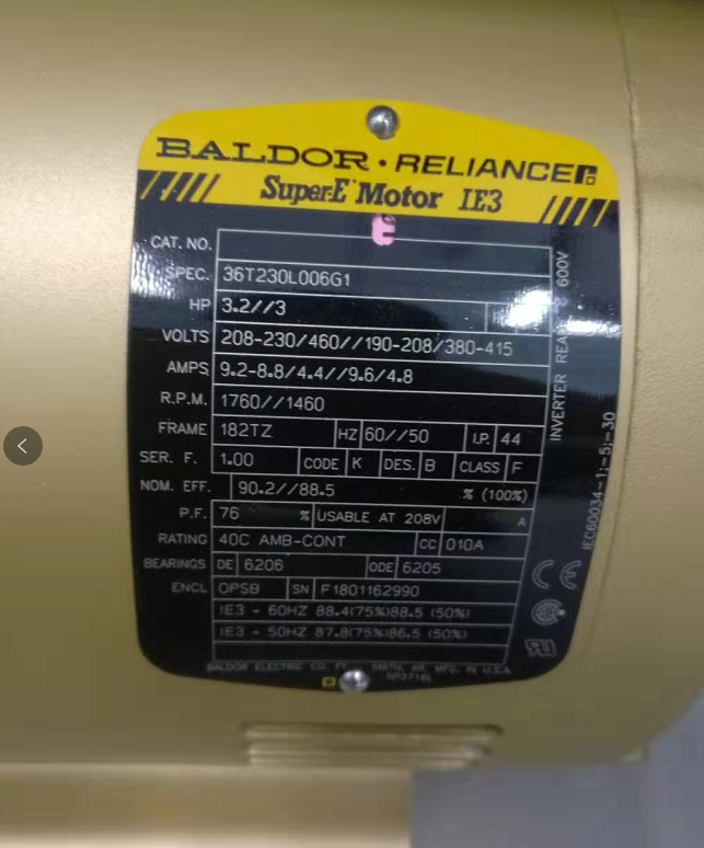 產品介紹:葆德( Baldor)電機,原為美國保德電機(Baldor ),曾一度叫做巴杜電機,成立于1920年,是一家美國的上市公司。2007年并購了羅克韋爾自動化旗下的瑞恩電氣(Reliance Electric)和道奇(Dodge)兩個品牌(全稱葆德·道奇·瑞恩 .DODGE.RELIANCE),成為北美**,***二大的工業電機供應商。